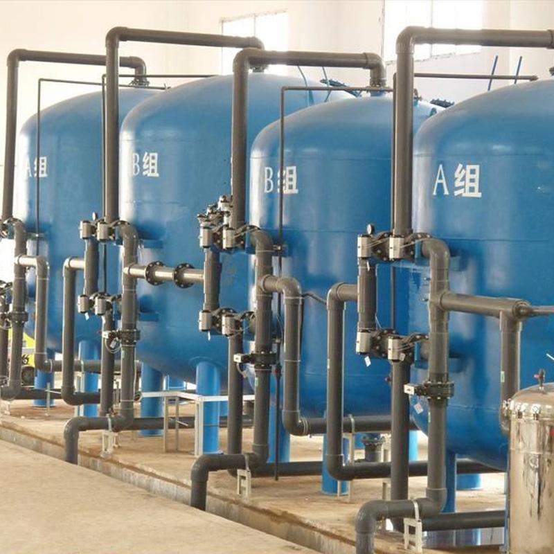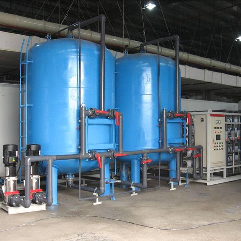 原水經(jīng)過(guò)增壓泵加壓后進(jìn)入石英砂過(guò)濾器,主要去除水中的泥沙、鐵銹、紅蟲(chóng)及藻類等固體物質(zhì),系統(tǒng)設(shè)置兩套石英砂過(guò)濾機(jī),正常運(yùn)行條件如下:平均過(guò)濾速度為3M/h,壓力不大于4.5kgf/cm2。內(nèi)壁籿膠,碳鋼材質(zhì)。
