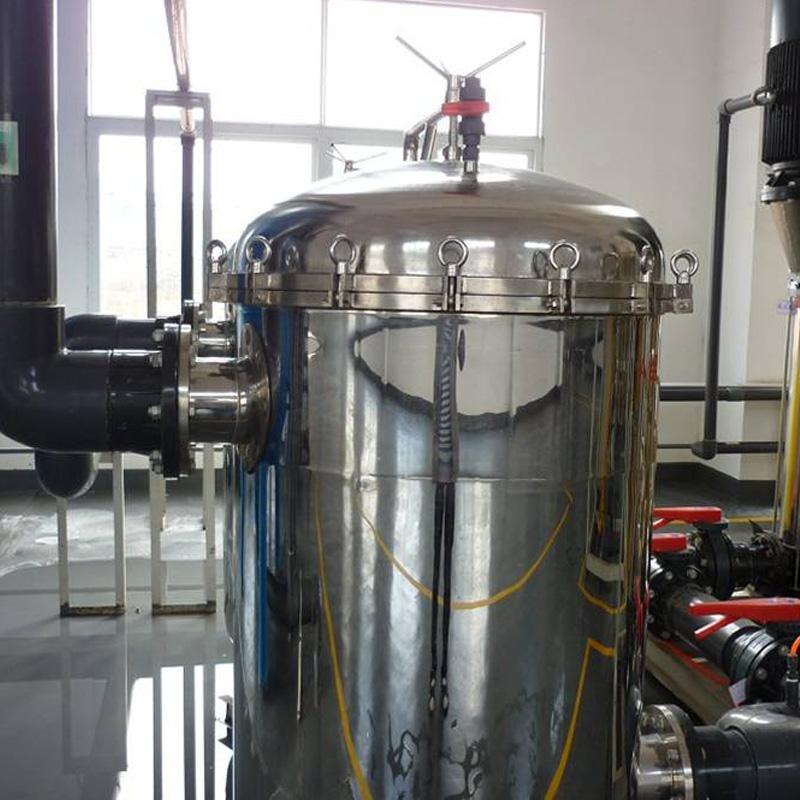 水經(jīng)過(guò)精密過(guò)濾機(jī)過(guò)濾,進(jìn)一步阻擋水中部分大顆粒物質(zhì)和固體懸浮物,并阻擋破碎的石英砂和活性碳顆粒物,保證出水水質(zhì)的渾濁度和色度。
